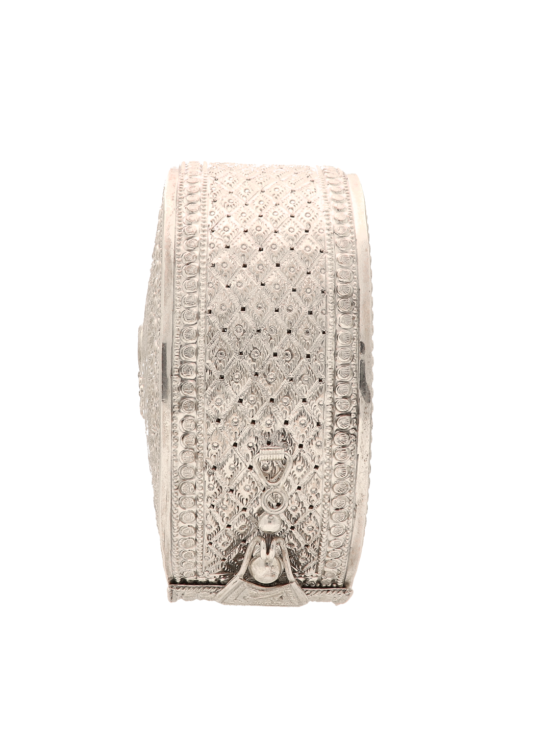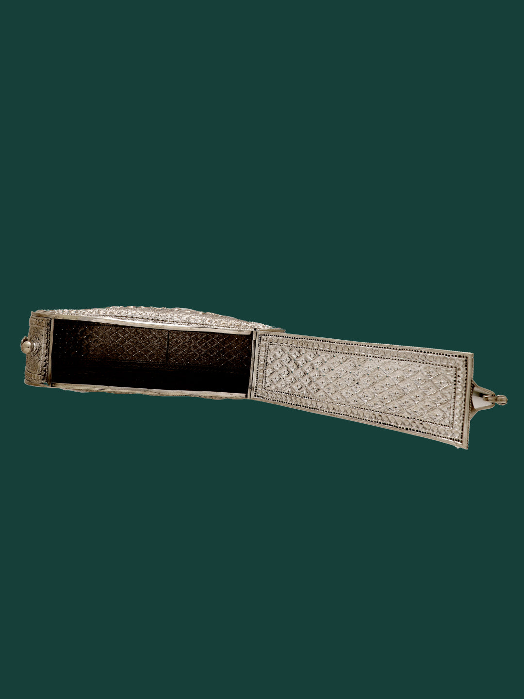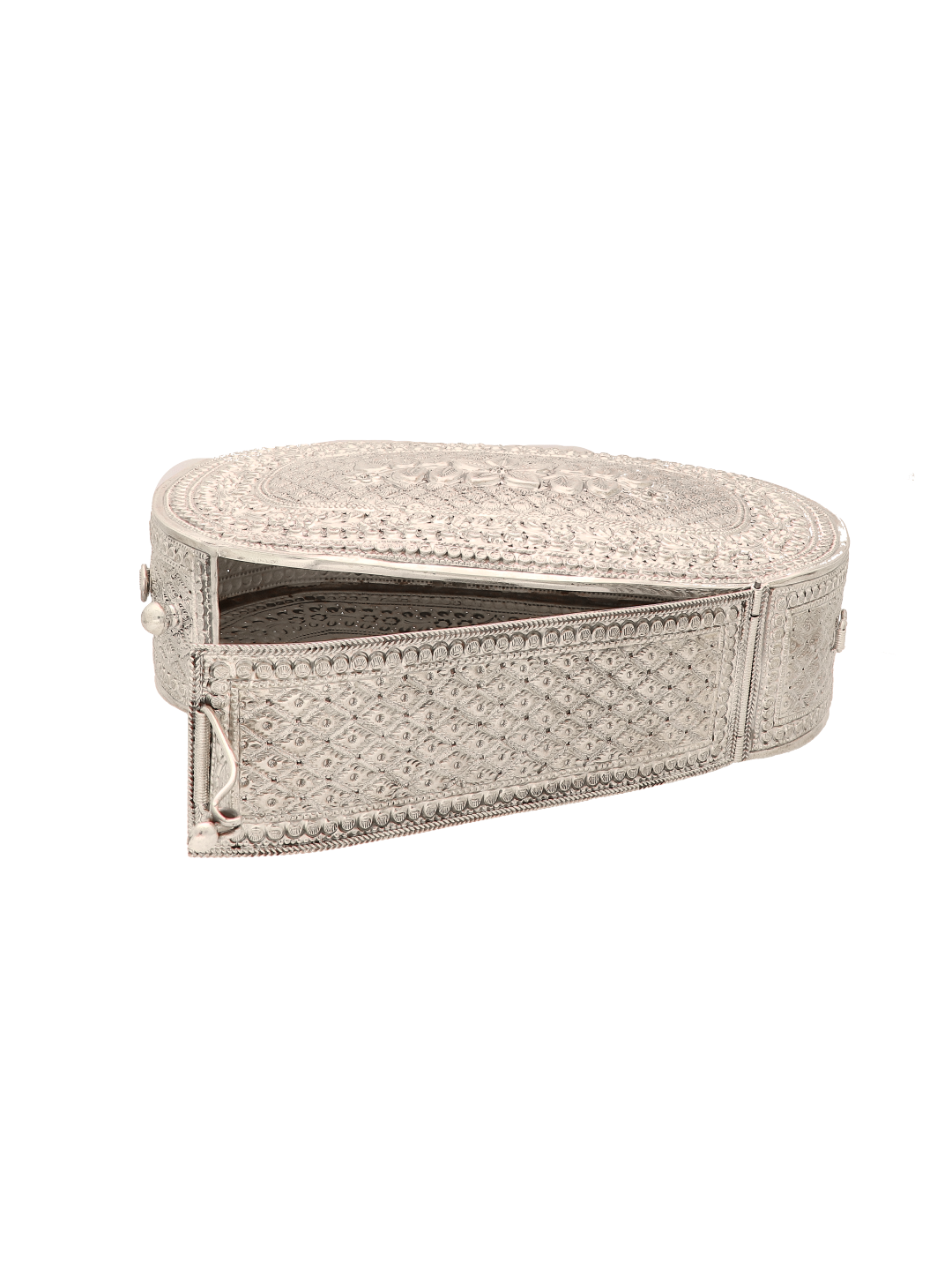 Luxury Mirror Polish 925 Silver Purse featuring an intricately carved peacock motif, symbolizing beauty and grace. Crafted from certified hallmarked silver with a brilliant mirror-polish finish, this ornamental clutch is designed for weddings, traditional ceremonies, and formal occasions. The detachable chain offers versatile styling—wear it over the shoulder or as a handheld piece. A timeless heirloom that combines exquisite artistry with practical elegance, perfect for those who appreciate authentic craftsmanship and enduring value.