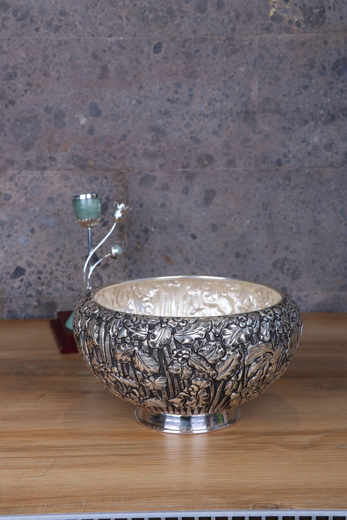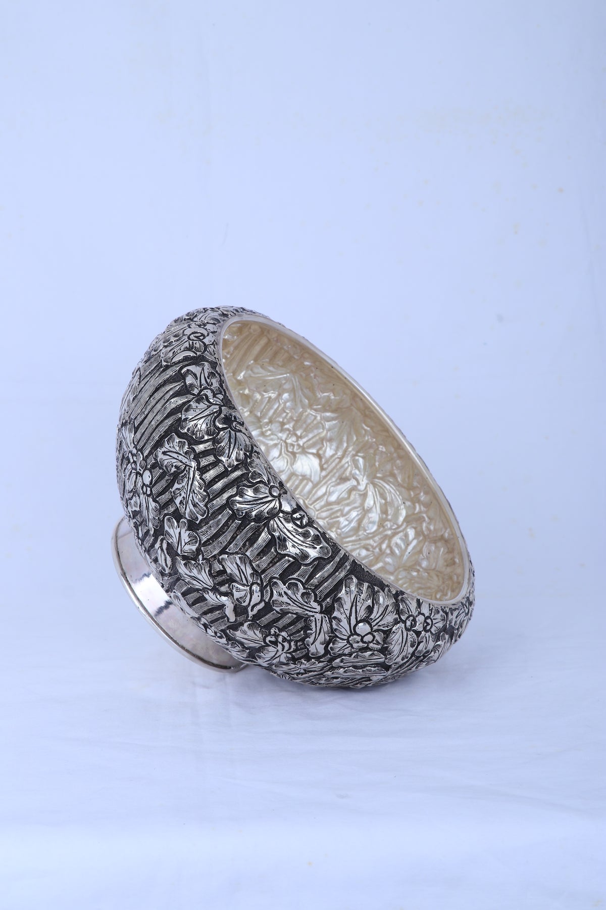 Pure 925 Silver Fruit Bowl (1118g) - Traditional Nakshi Design Centrepiece