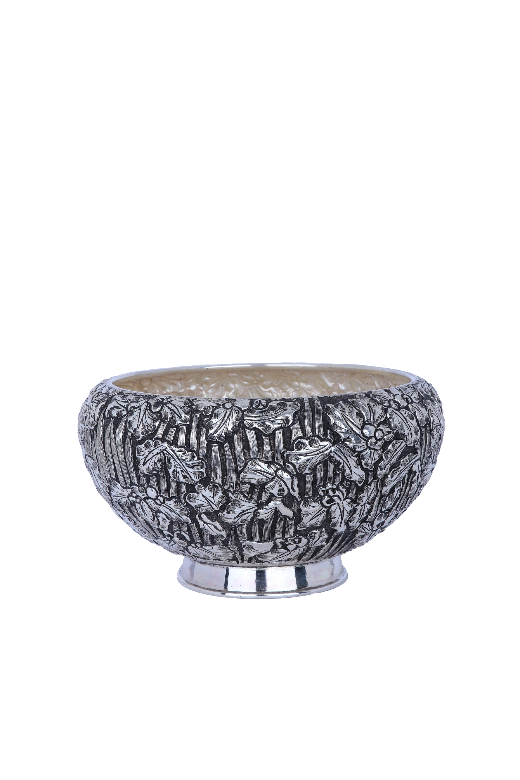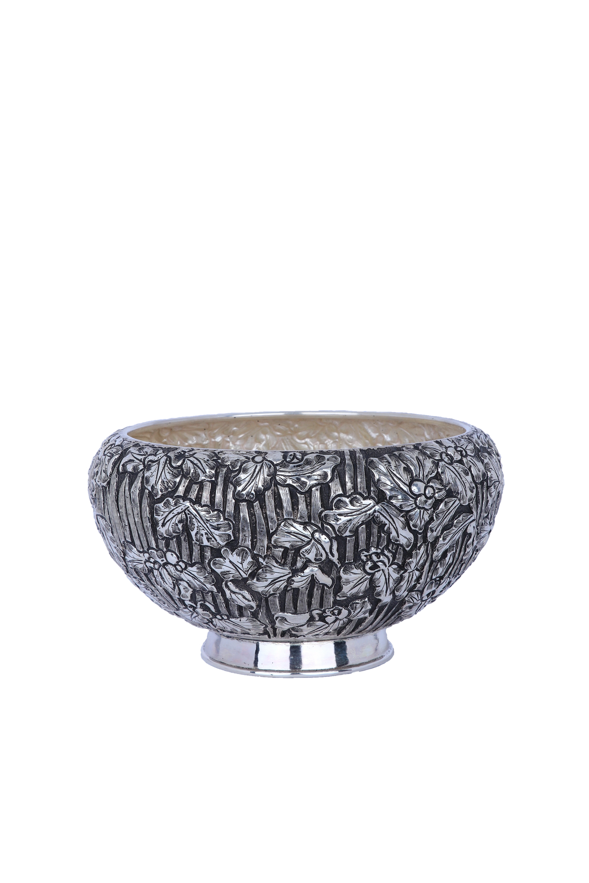 Handcrafted from certified 925 sterling silver, this 1118g fruit bowl showcases intricate Nakshi design across its entire surface. The deep mirror polish and substantial weight create an elegant centrepiece for your dining table or temple space. Silver's natural antimicrobial properties keep served foods hygienic, while the timeless craftsmanship ensures this piece becomes a cherished heirloom. Perfect for presenting fresh fruits, dry fruits, or sweets at gatherings, it embodies prosperity and hospitality in Indian tradition.