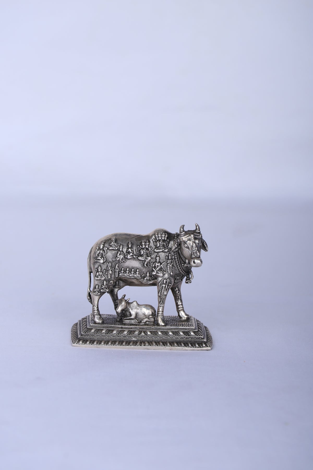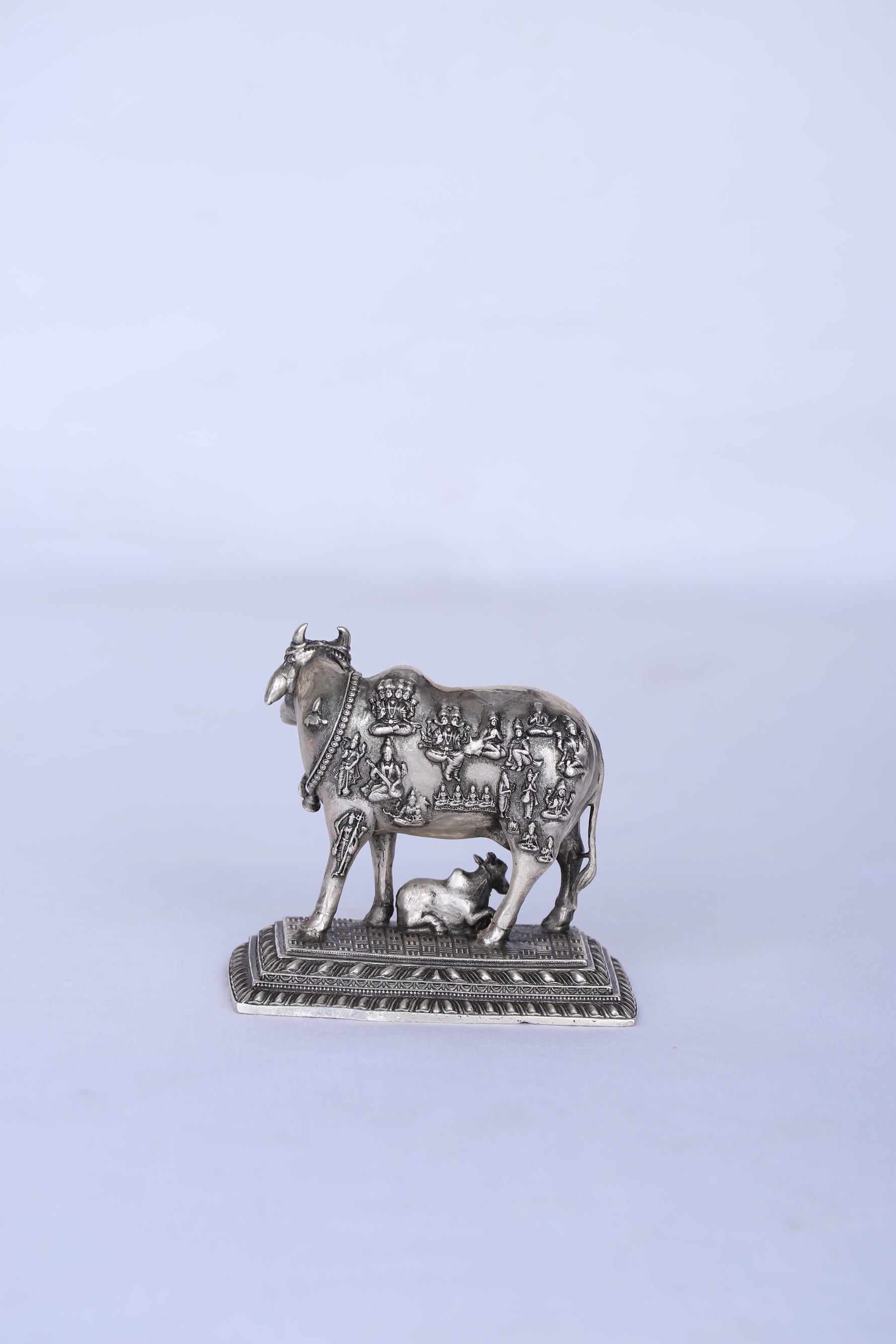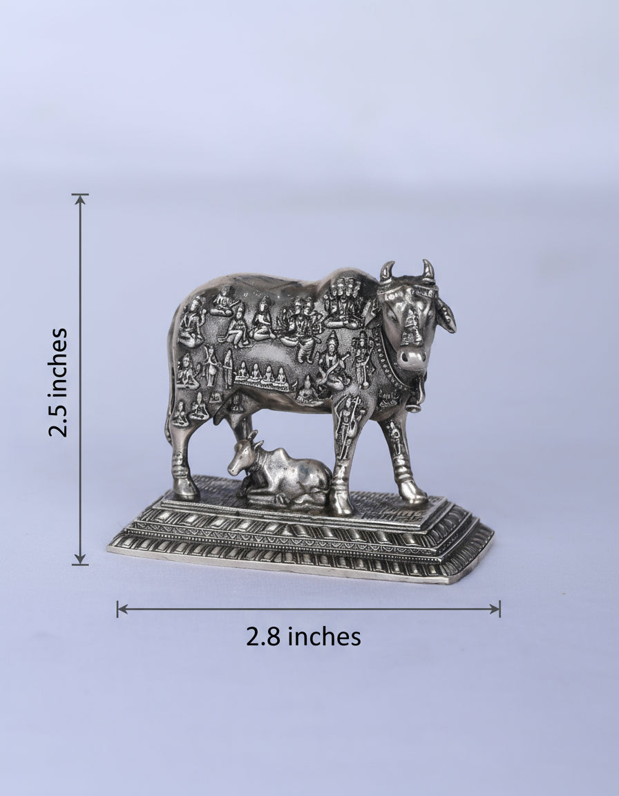 Celestial Kamdhenu & Calf Sacred Tableau – Divine Mythological Silver Sculpture (112g, 2.5"x2.8")