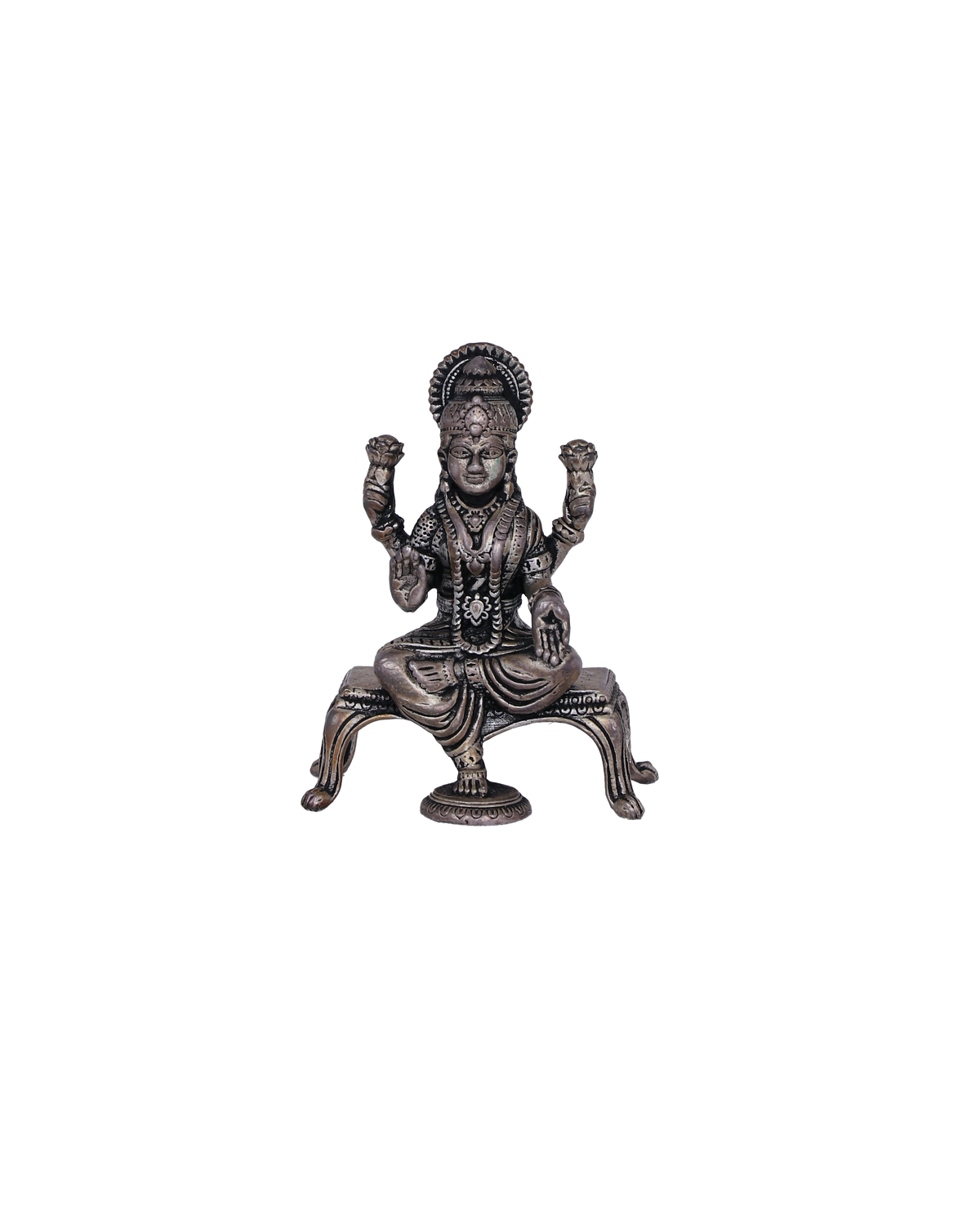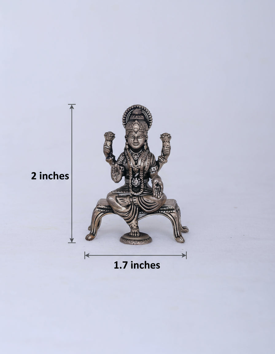 This 45.5g Lakshmi idol is crafted from pure 925 silver, depicting the four-armed goddess seated on a lotus. With intricate detailing and an antique finish, it symbolizes wealth and protection. Ideal for daily worship, festivals, and rituals, its stable base ensures secure placement. Perfect for home or office shrines, this divine figure brings blessings of prosperity and spiritual growth.