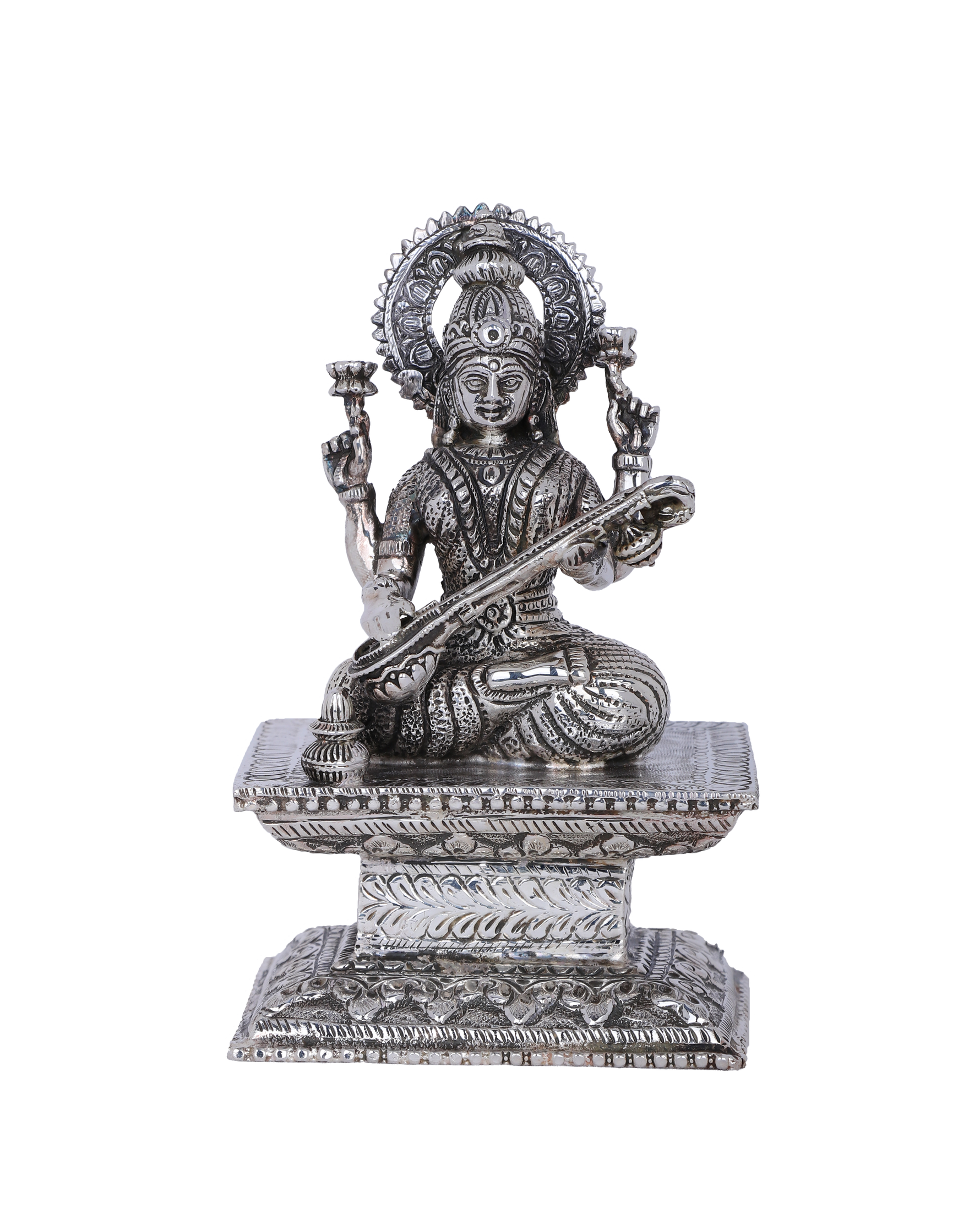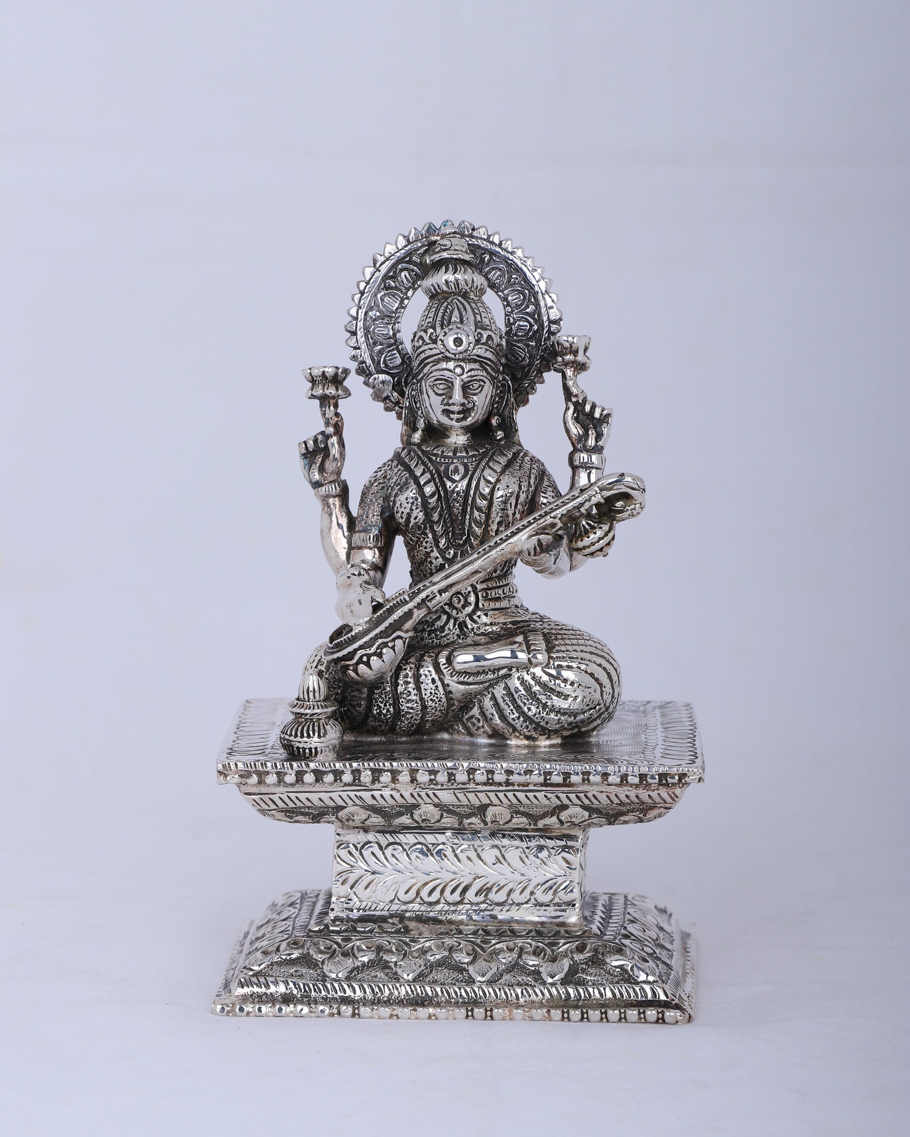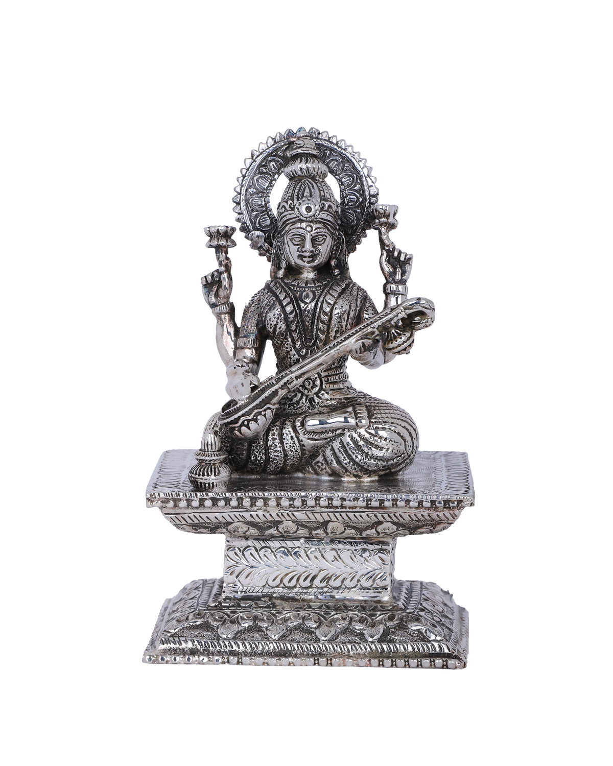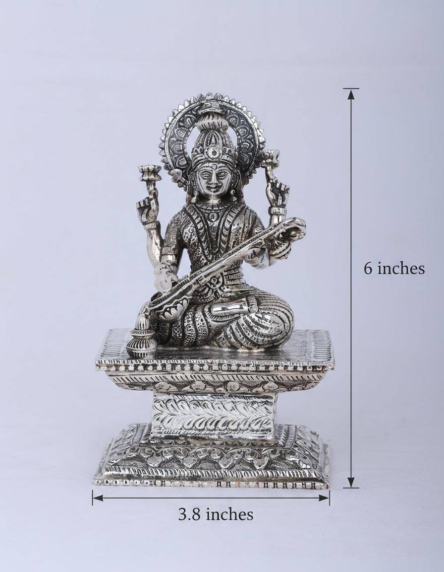 Pure 925 Silver Saraswati Idol – 623g Goddess Wisdom Temple Statue