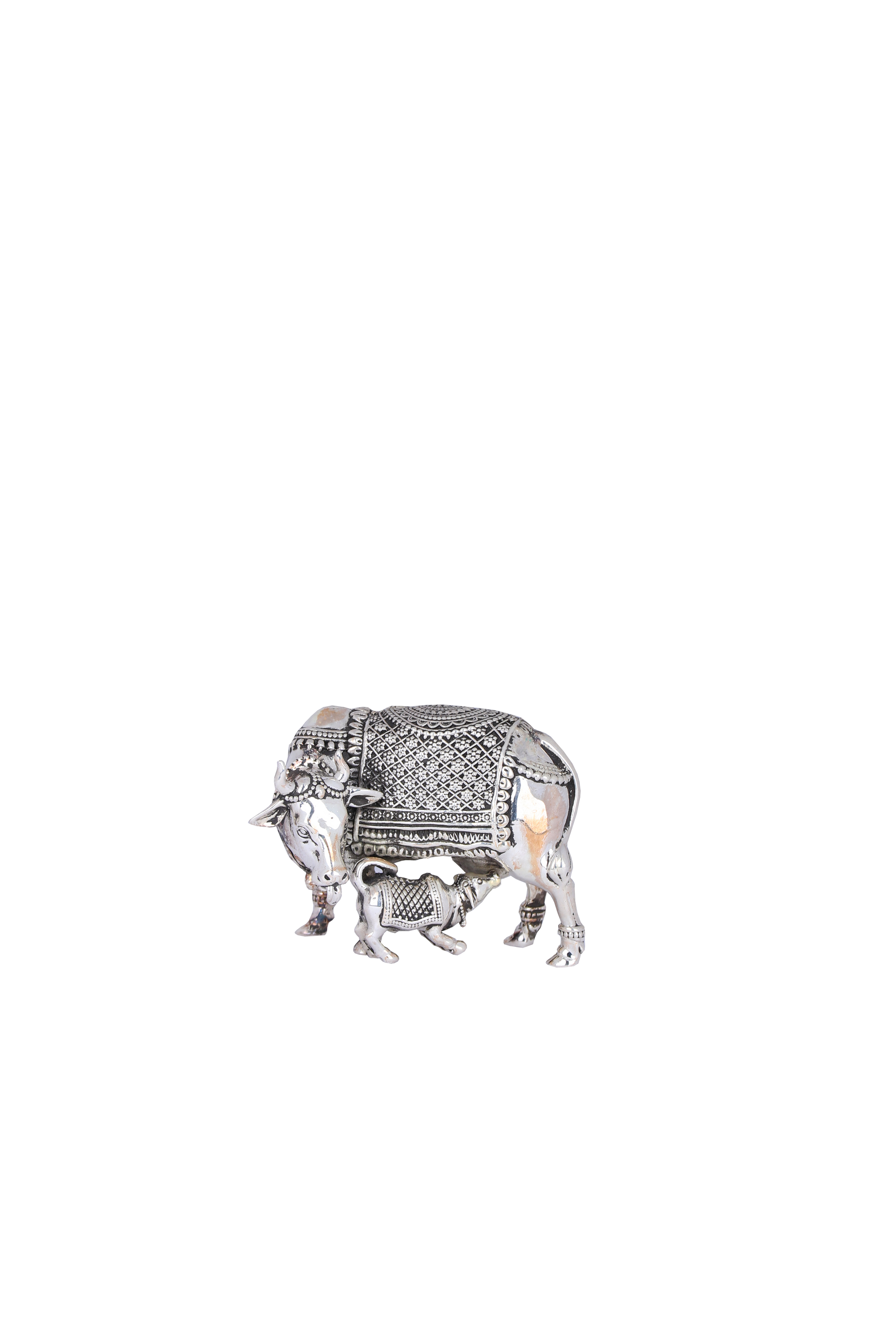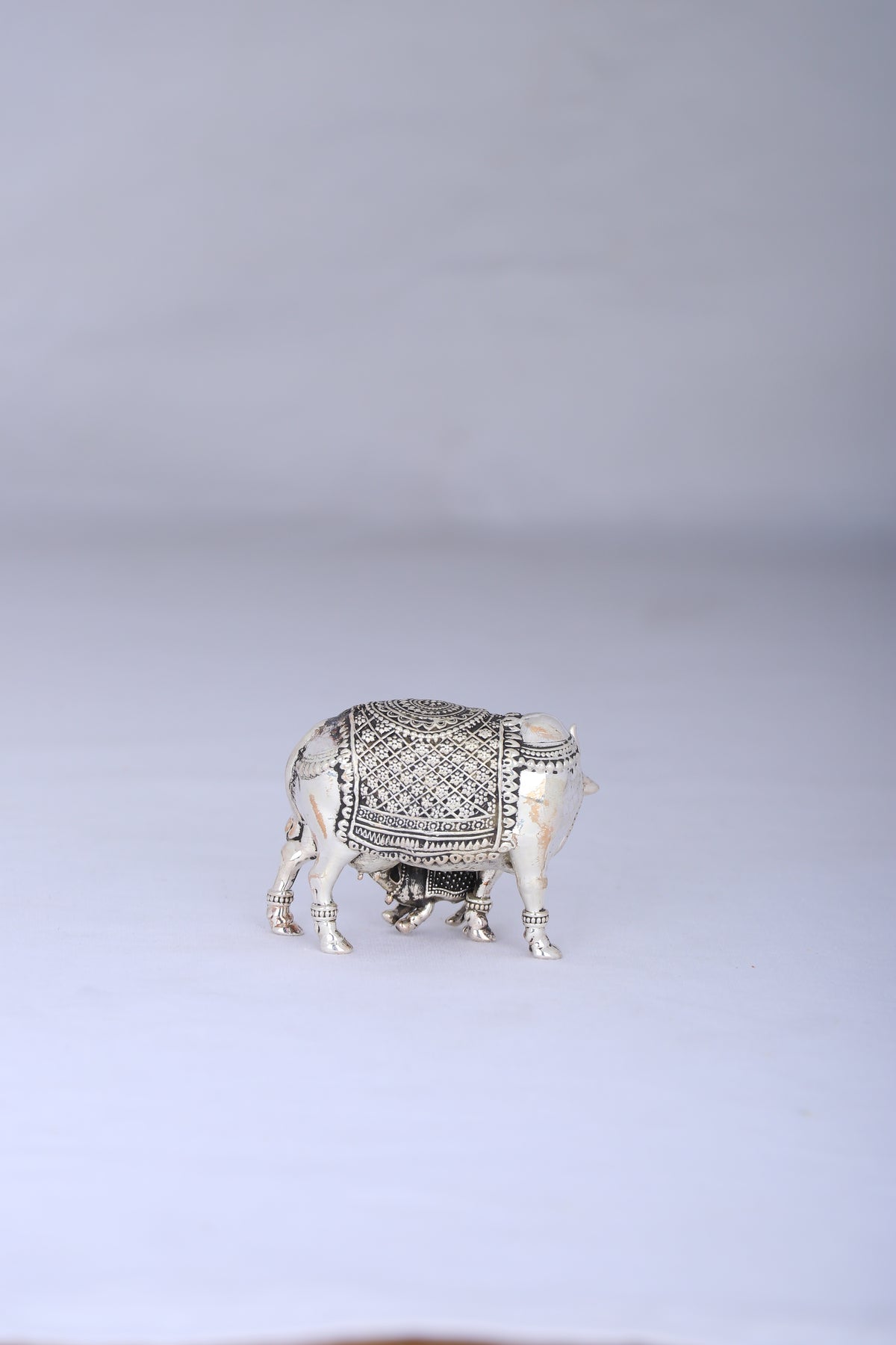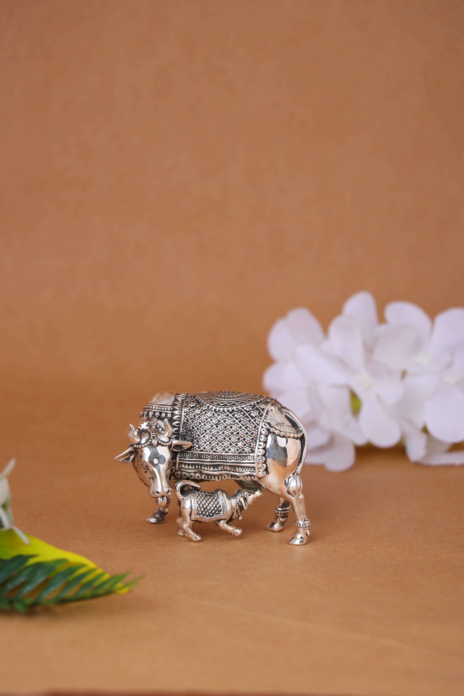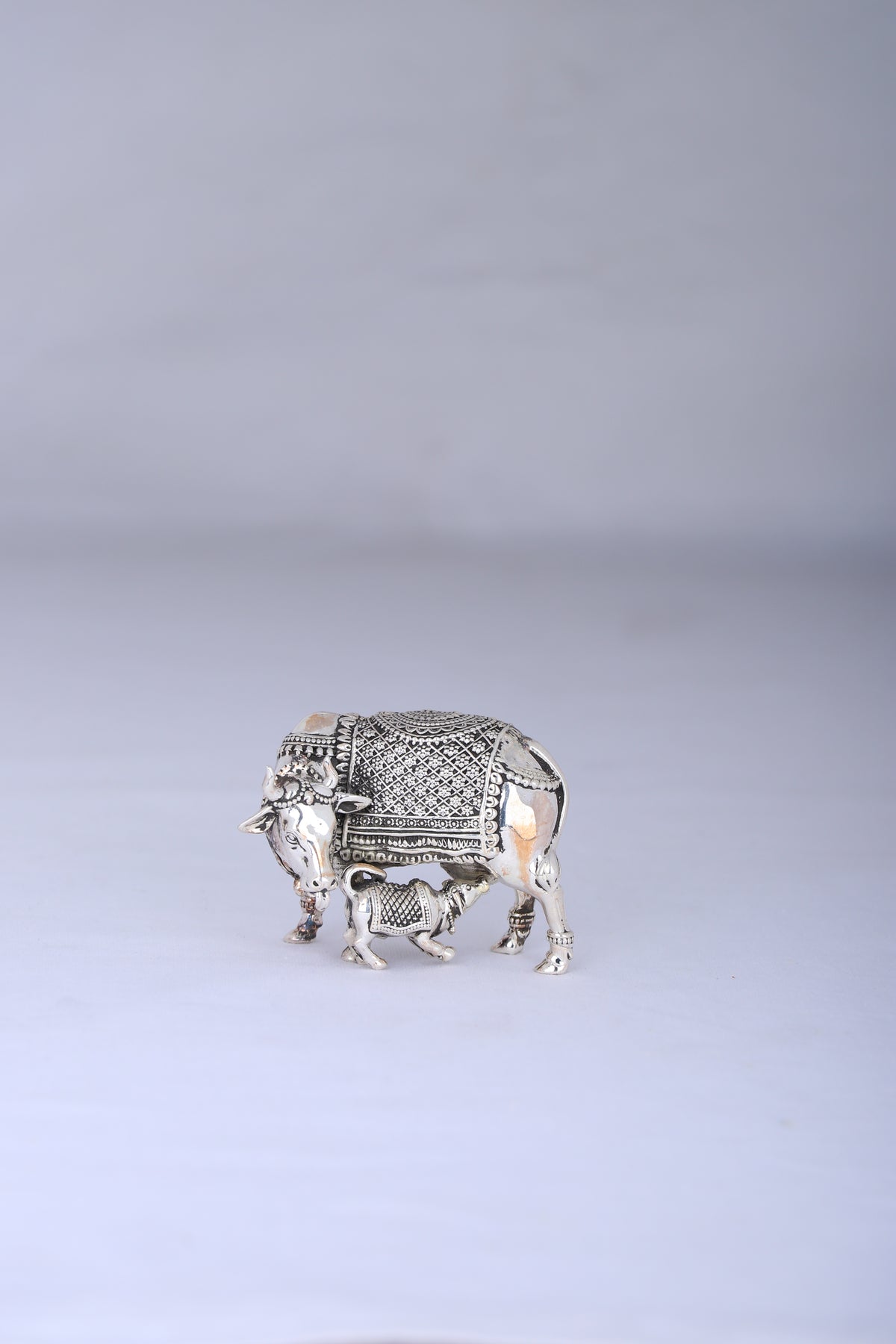 Sacred Kamdhenu Silver Cow & Calf Figurine – Divine Mother & Child Collectible (84g, 1.75"x2.4")