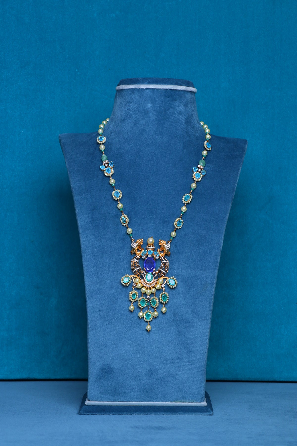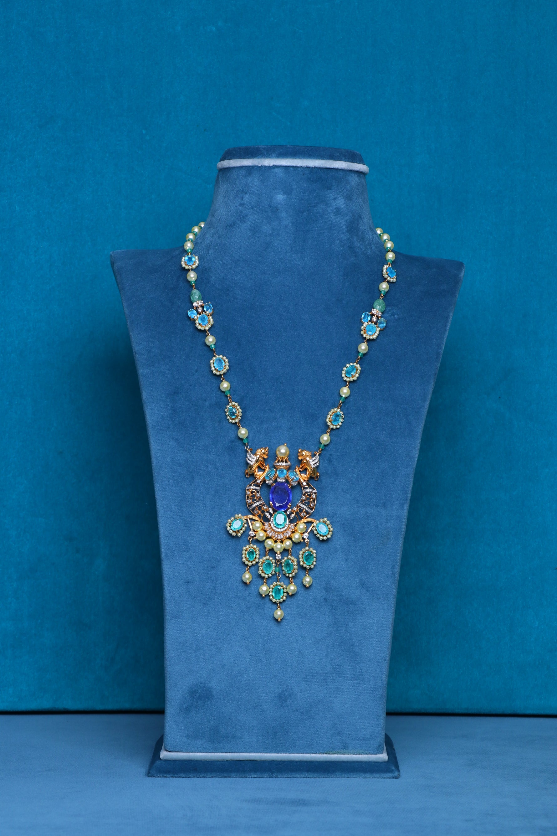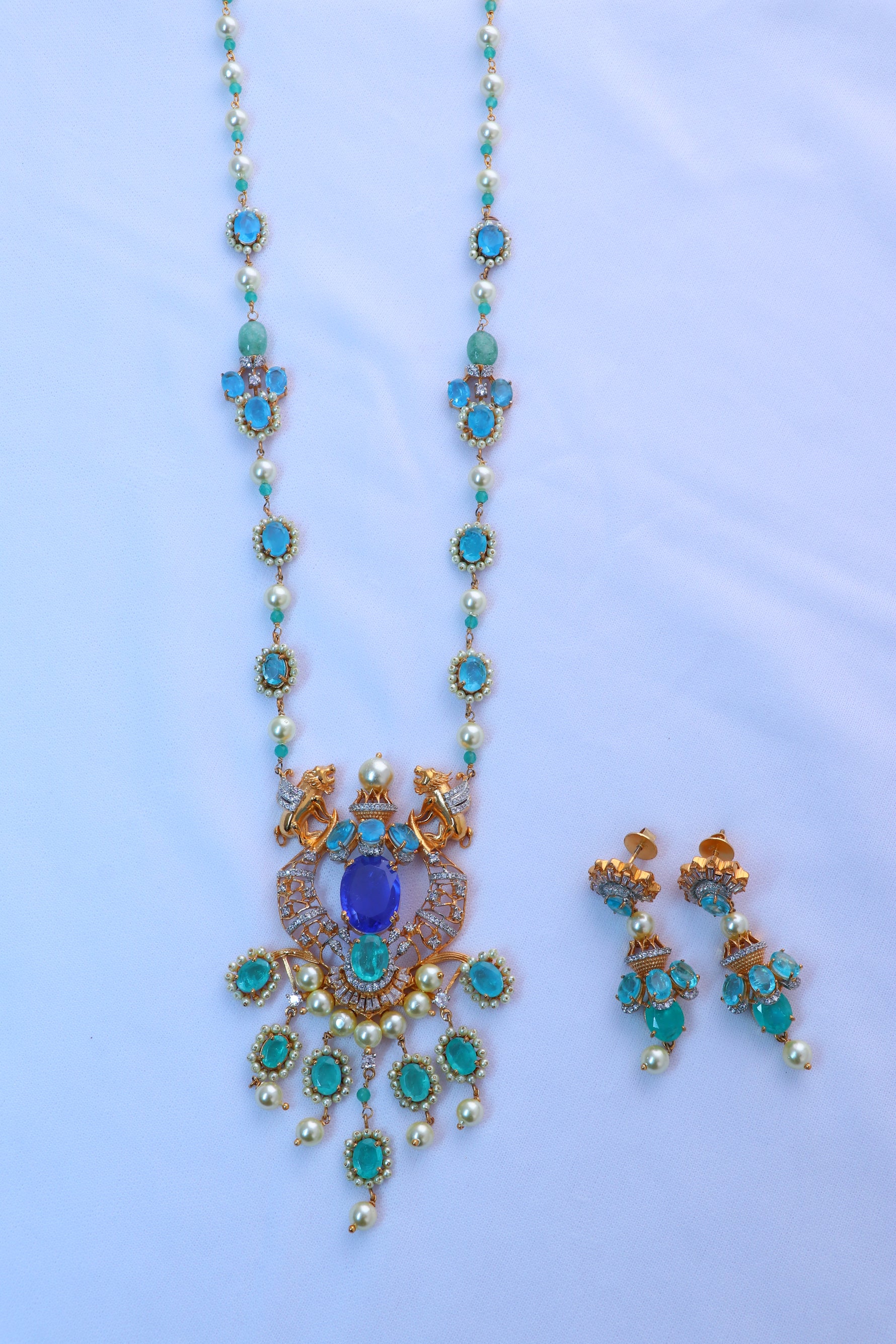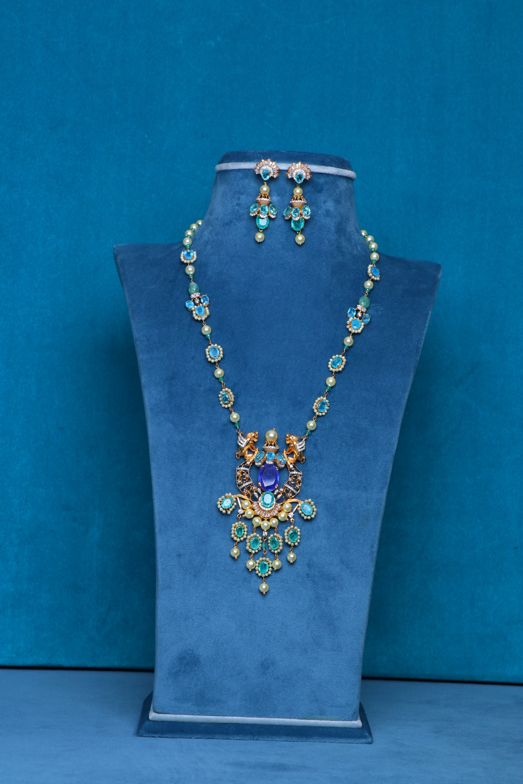 Design: Matching necklace (collar/choker) and earring set featuring bold, smooth, interconnected arc or V-shaped elements