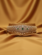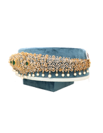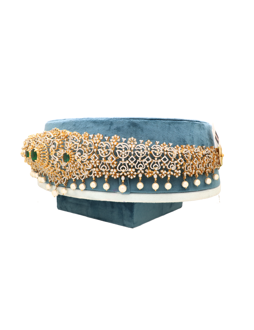 Luxury Gold-Polish Kamarbandh, White CZ and Pearl Drops, Heirloom