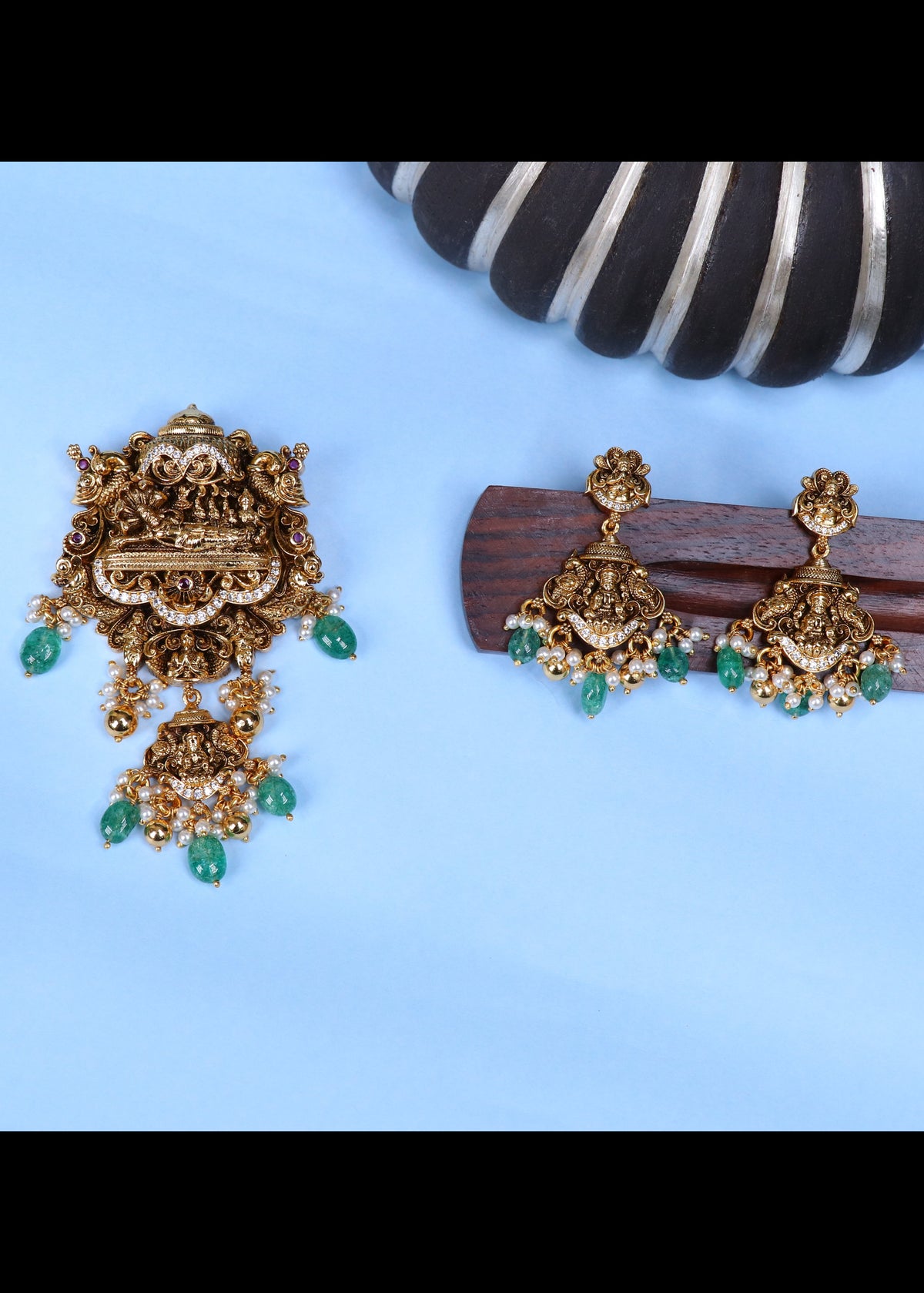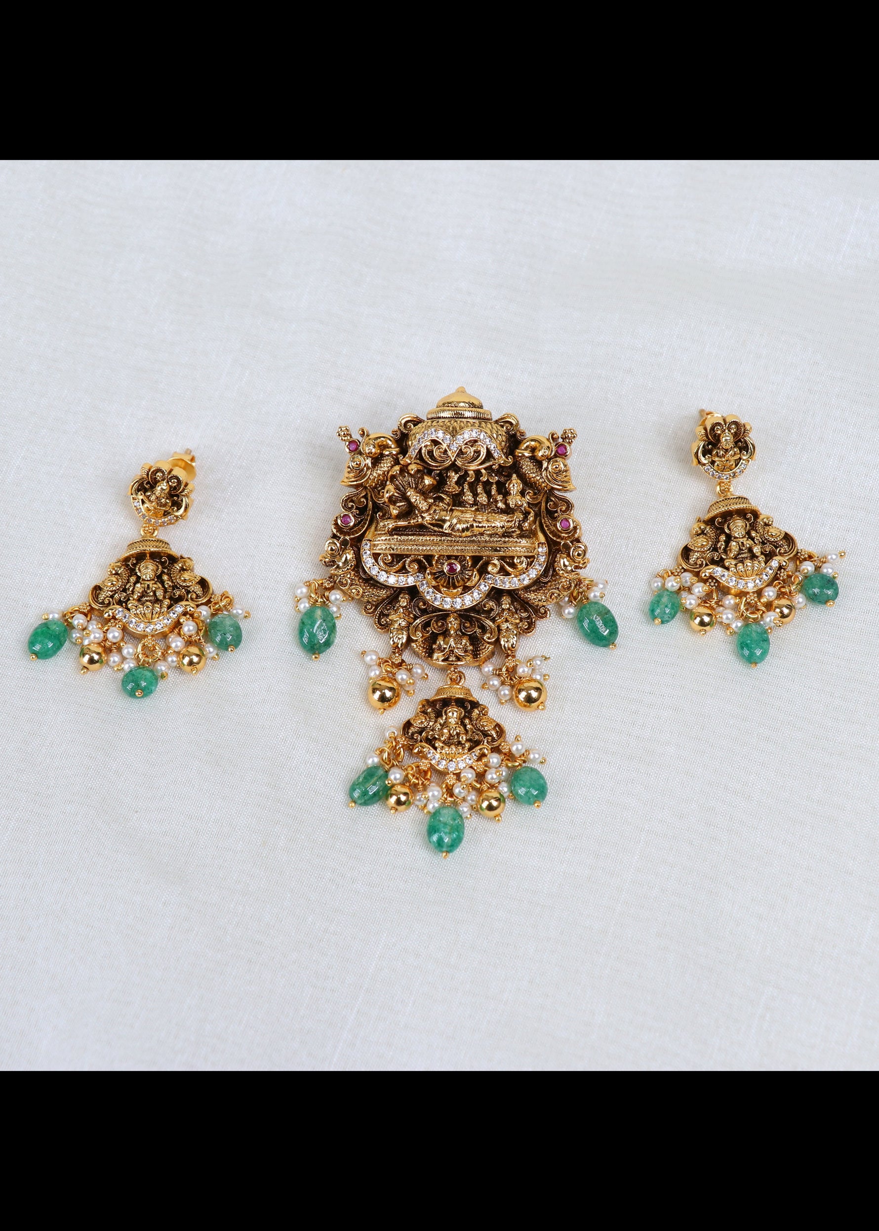 Design Coordinated Set: Pendant and Matching Drop Earrings with Intricate Detailing