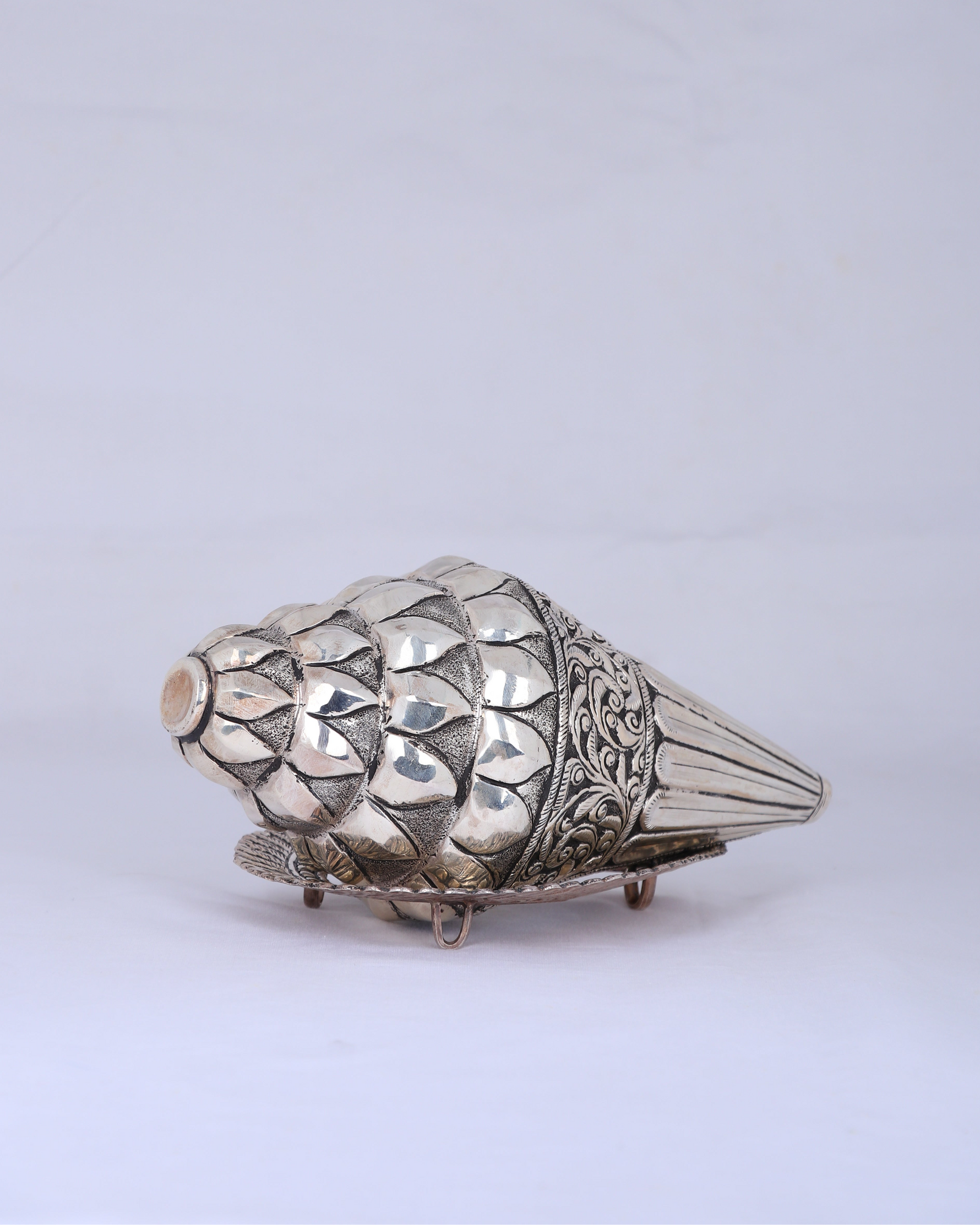 Handcrafted 925 Silver Shankh (380g) - Divine Luminescence Finish