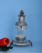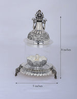 Grand Lakshmi Silver Akhand Diya – Borosilicate Glass & Lotus Base (310g, 8"x5")