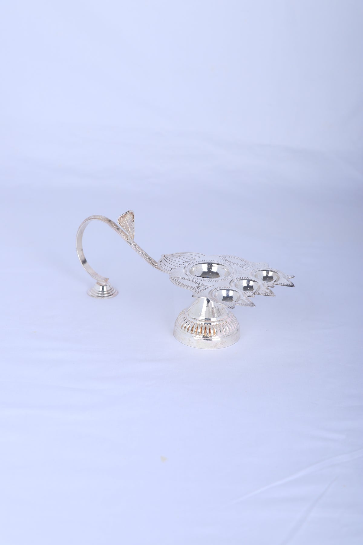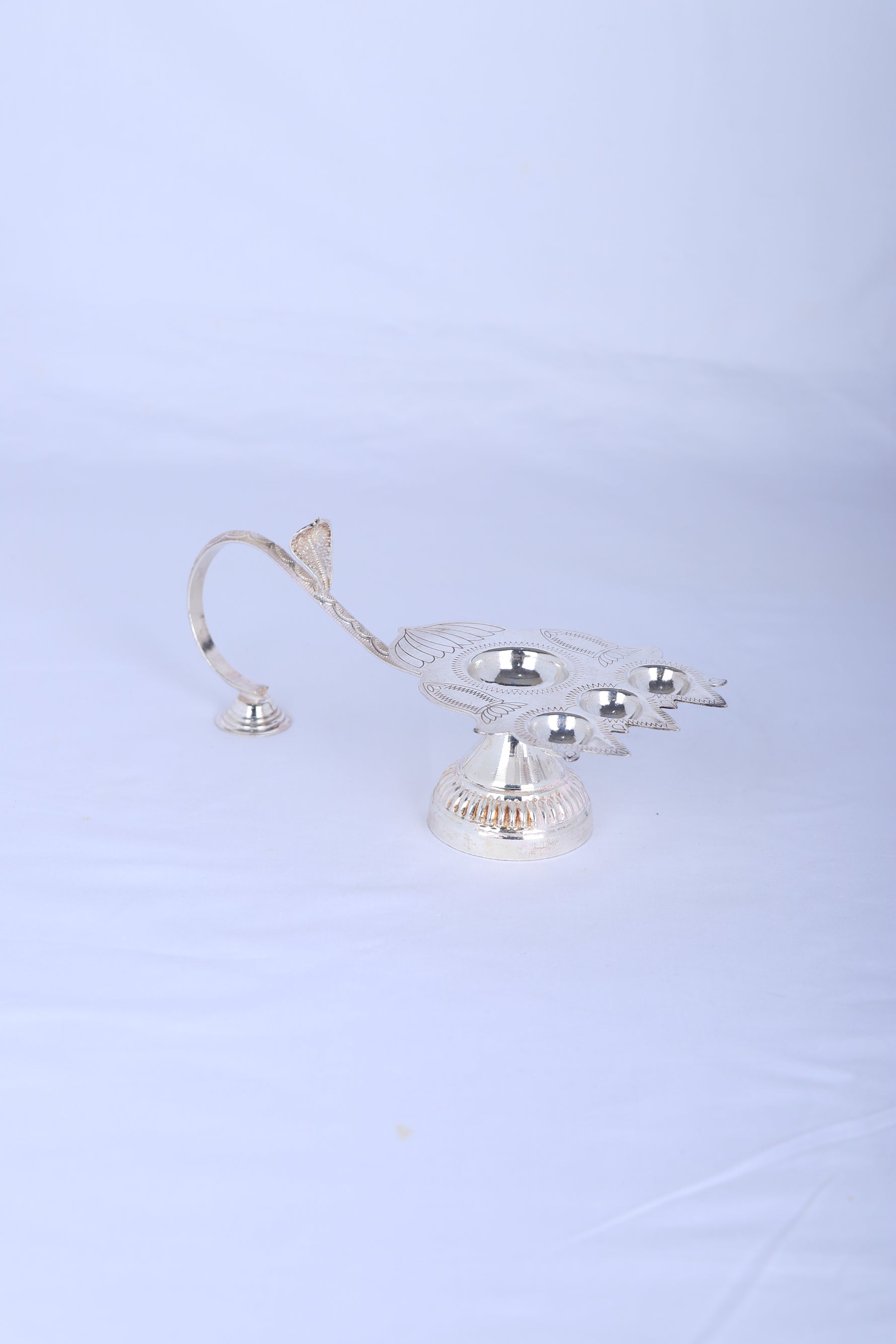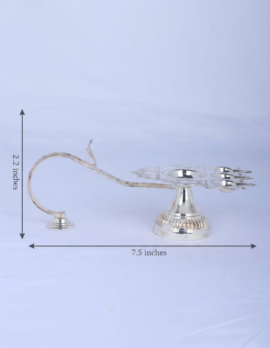 Type: Multi-Wick Silver Aarti Oil Lamp (Three-Wick Configuration)
