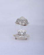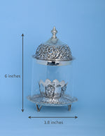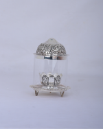 Ornate Silver Akhand Diya Set – Antique Nakashi Glass Chimney Eternal Lamps (212g)