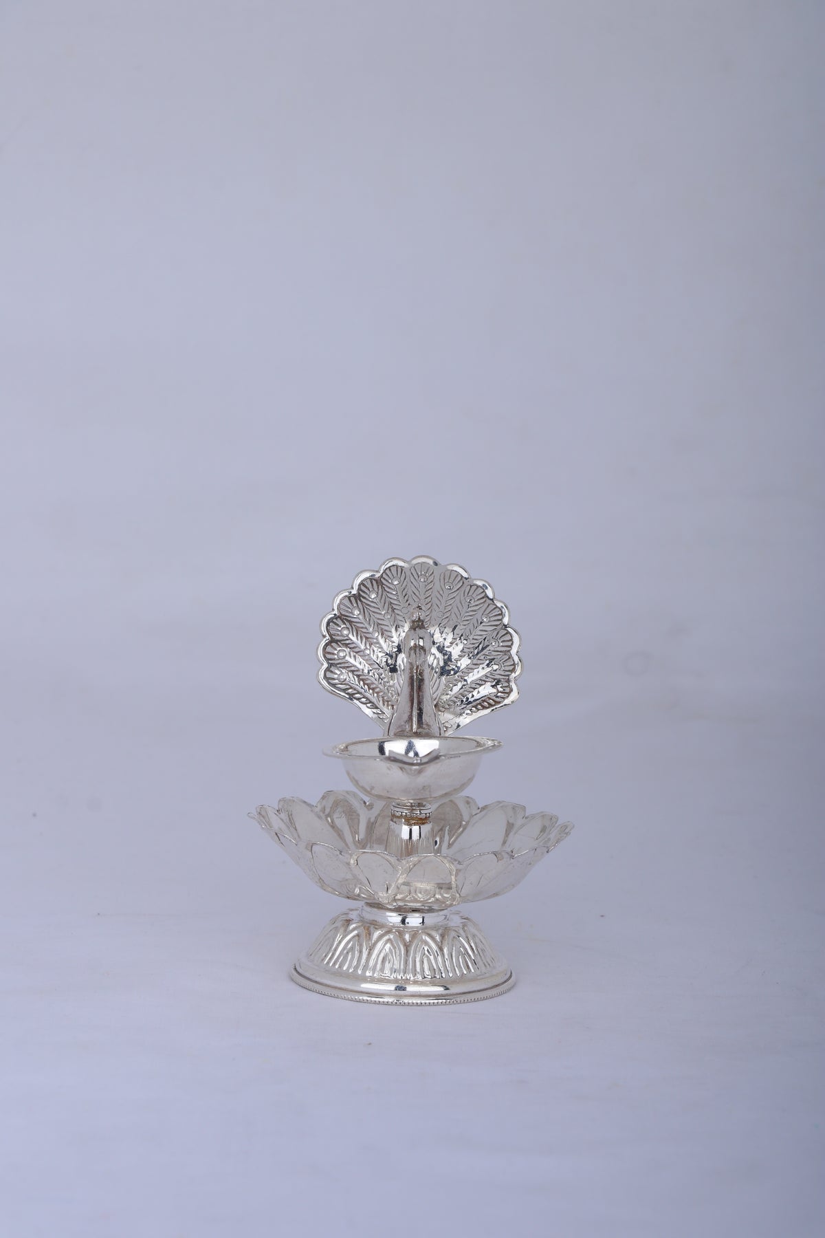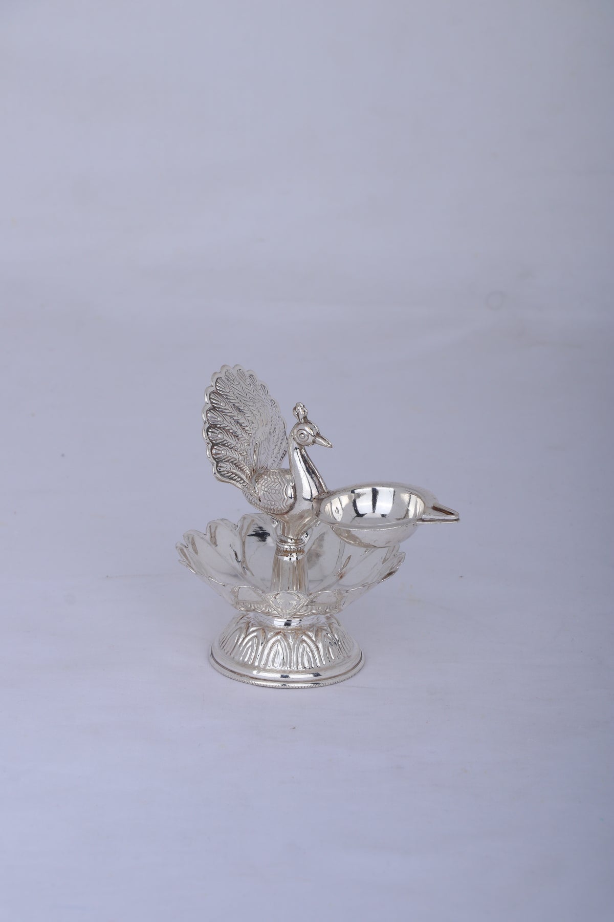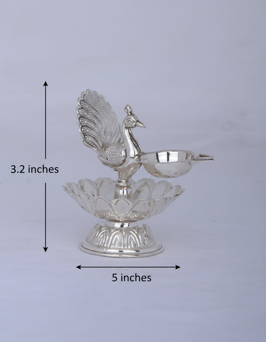 Pure 925 Silver Deepam – 123g Peacock Design Oil Lamp for Pooja