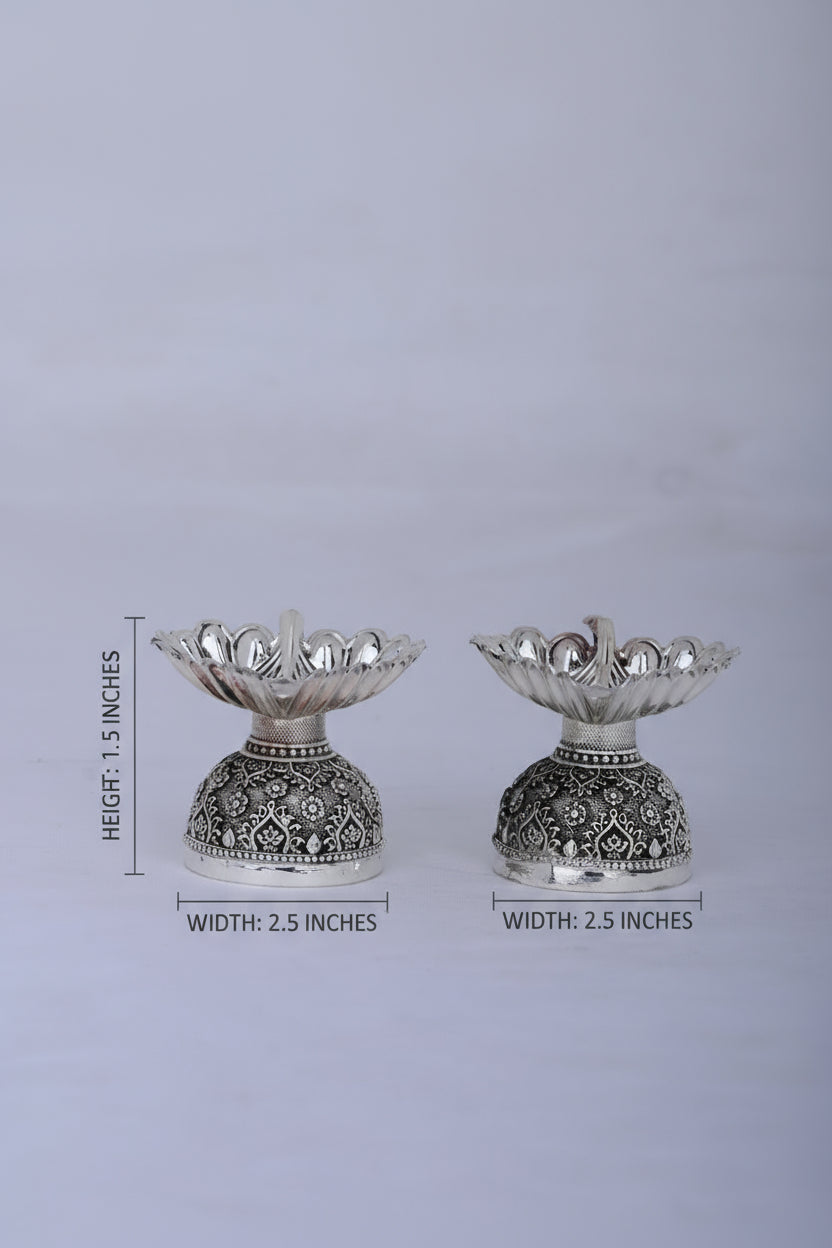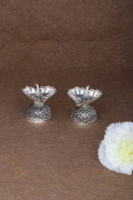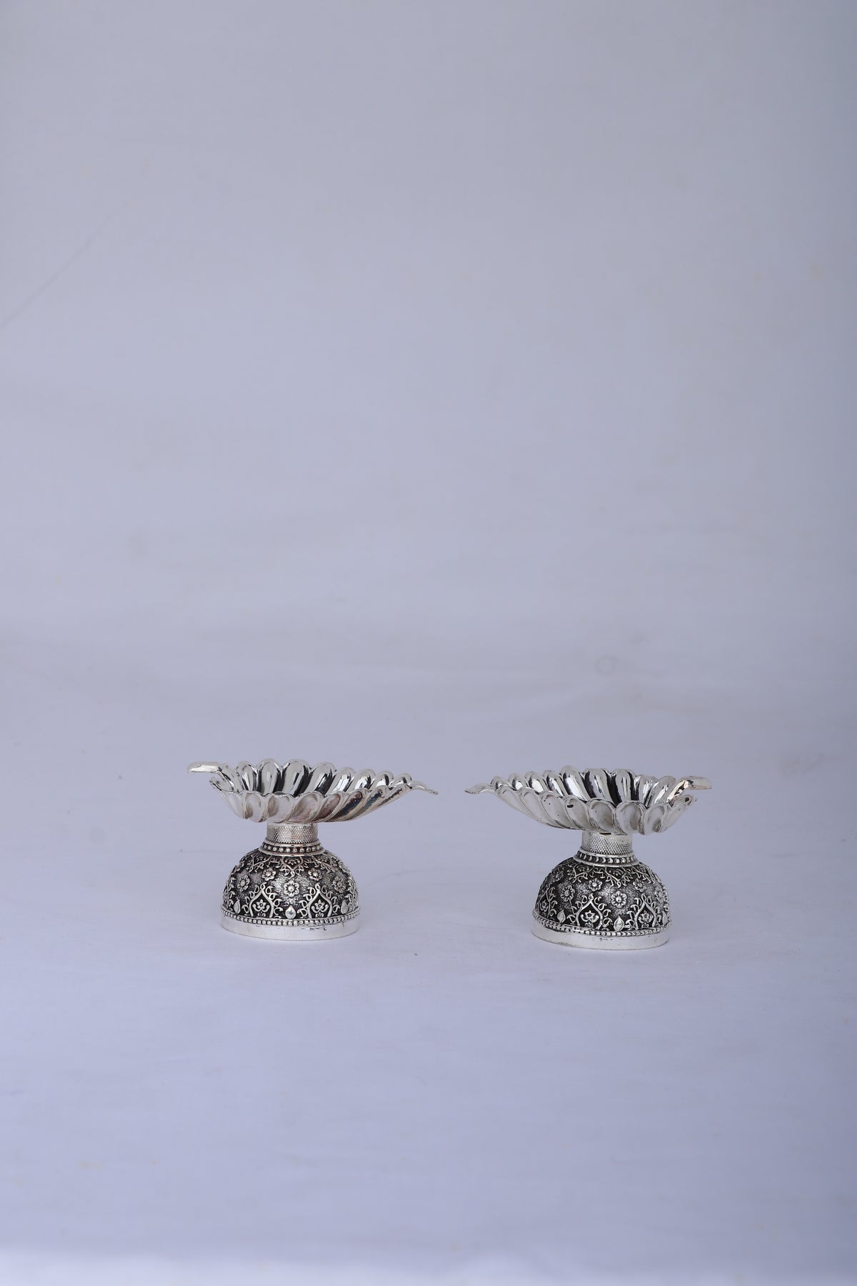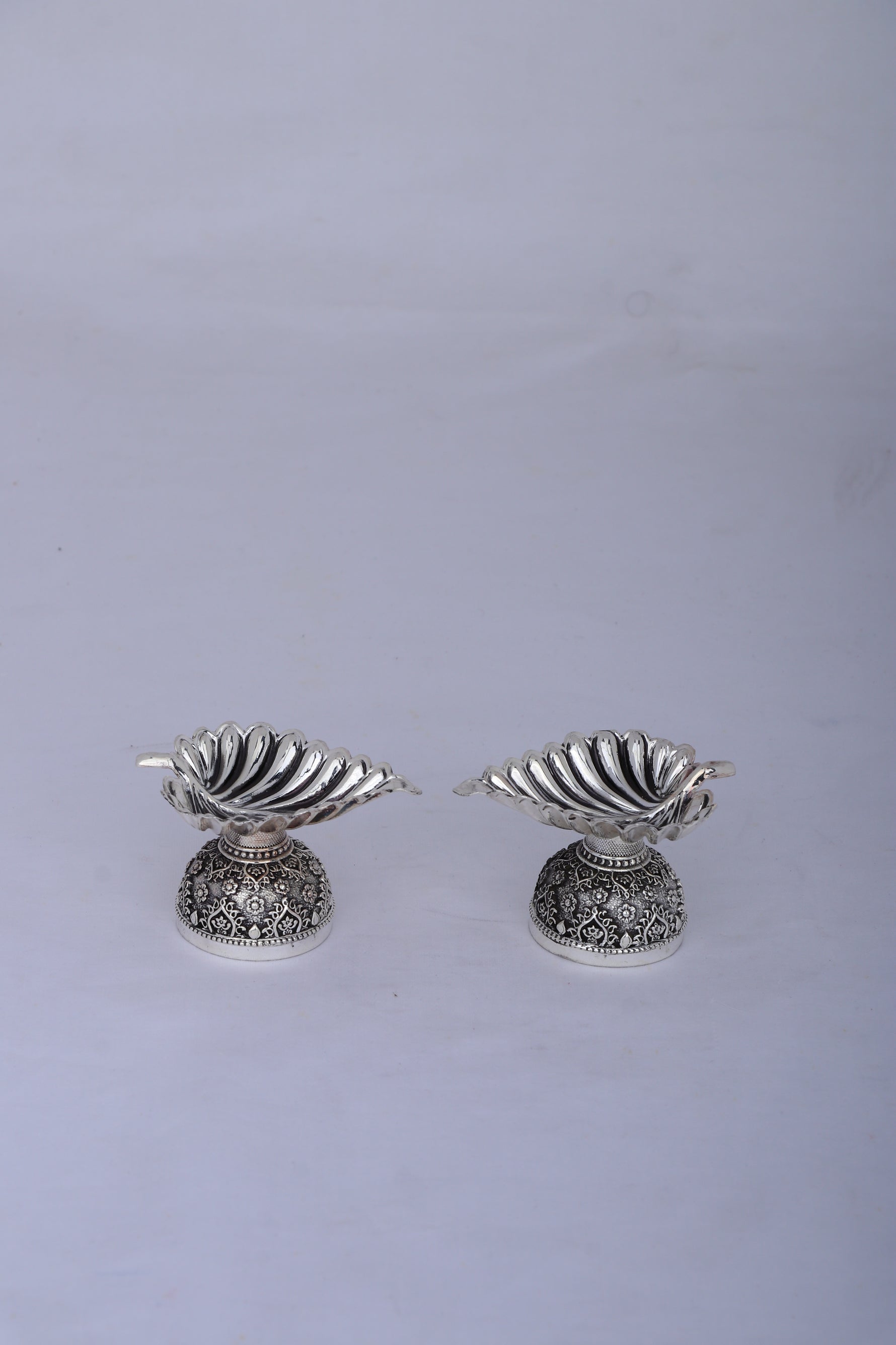 Pure 925 Silver Lotus Deepam Set – 93g Twin Oil Lamps for Pooja