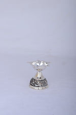 Product: Diya – Handcrafted Silver Floral Pedestal Oil Lamp