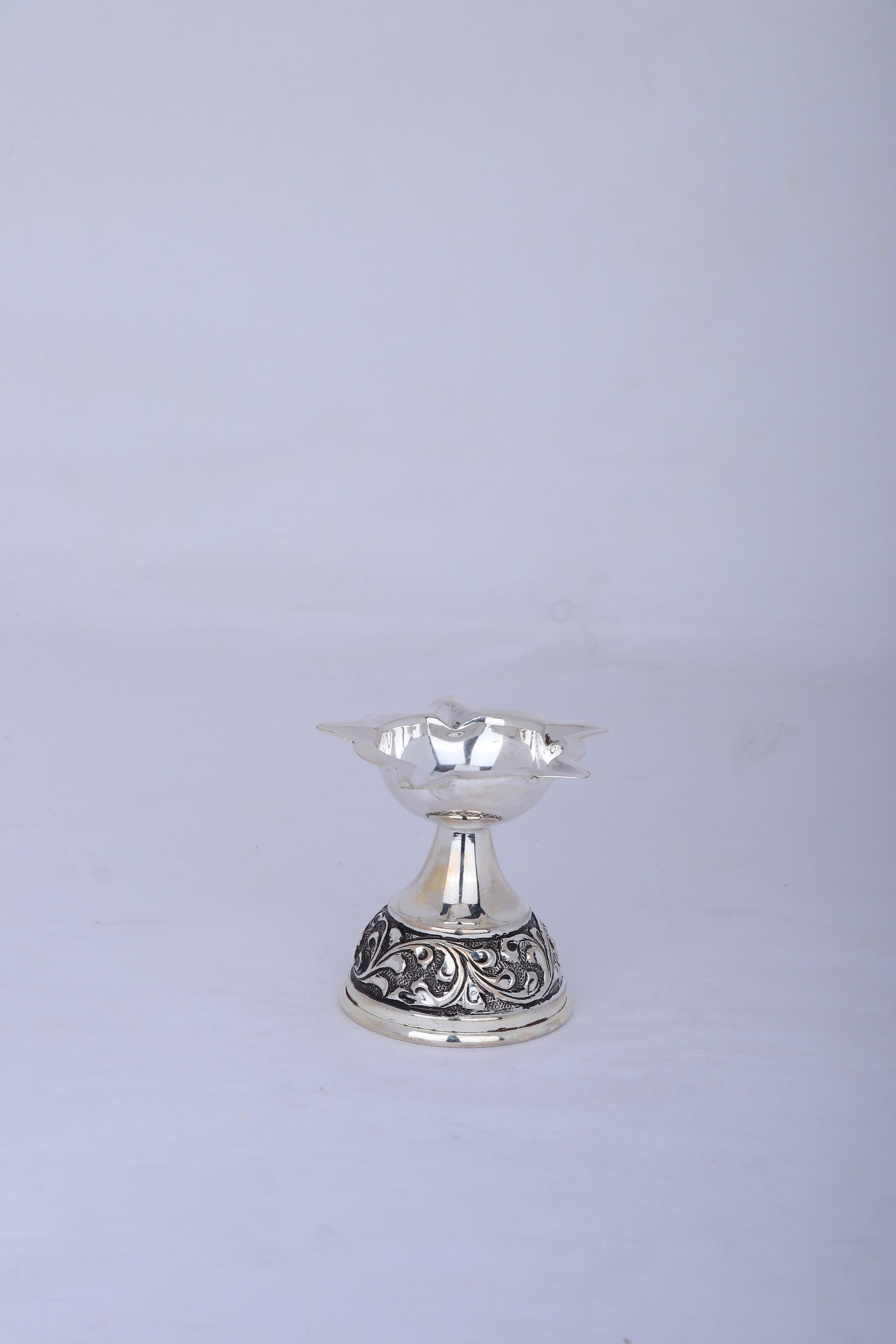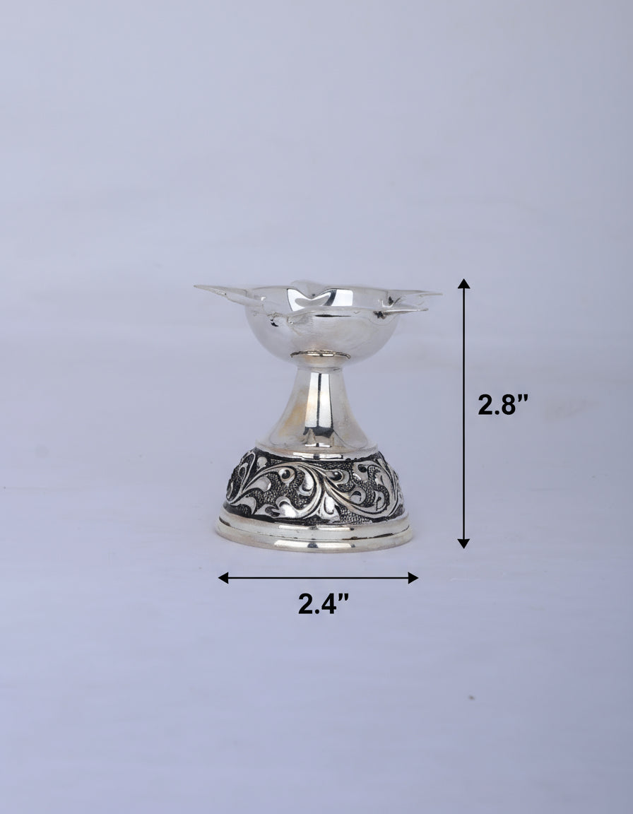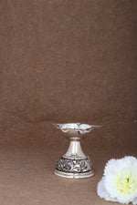 Regal Handcrafted Silver Diya – Ornate Floral Pedestal Oil Lamp