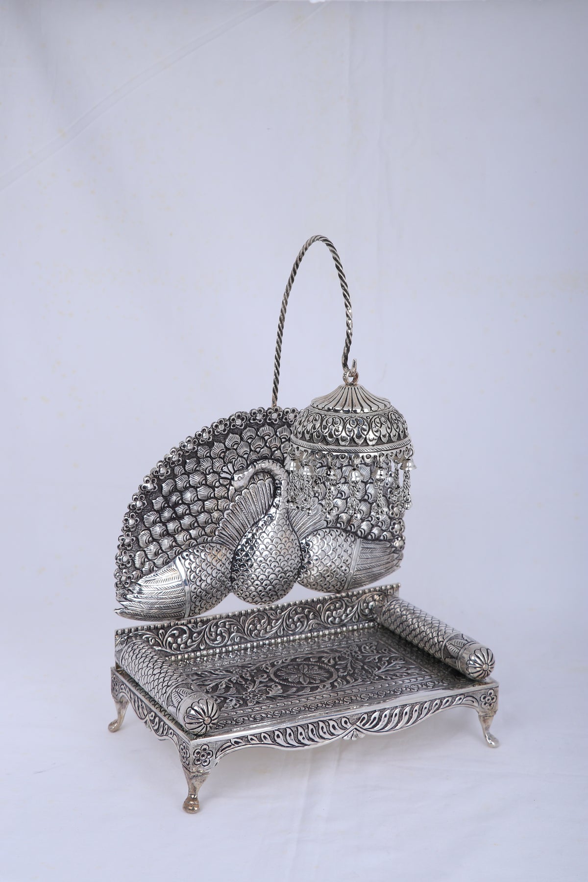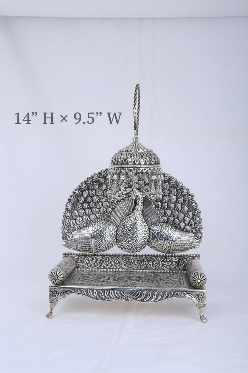 Pure 925 Silver Handcrafted Singhasan (1071g) with Peacock Arch