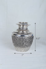 Antique Handcrafted Silver Lota – Nakashi Spiral Floral Design Pooja Kalash
