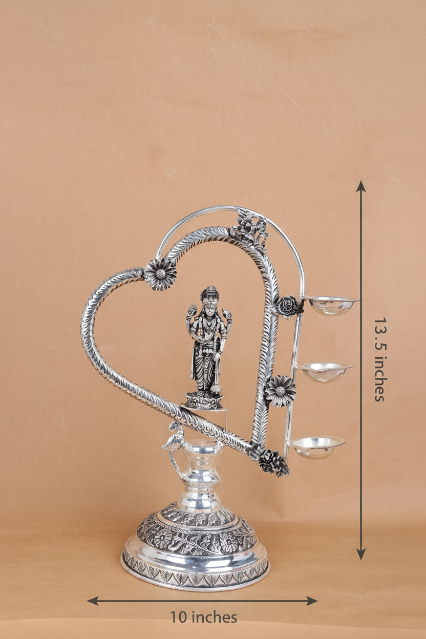 Type: Grand Silver-Plated Standing Oil Lamp Pair with Deity Figurines