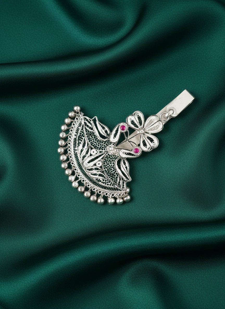 925 Pure Silver Peacock Keychain | Hand-Carved Mayur Accessory