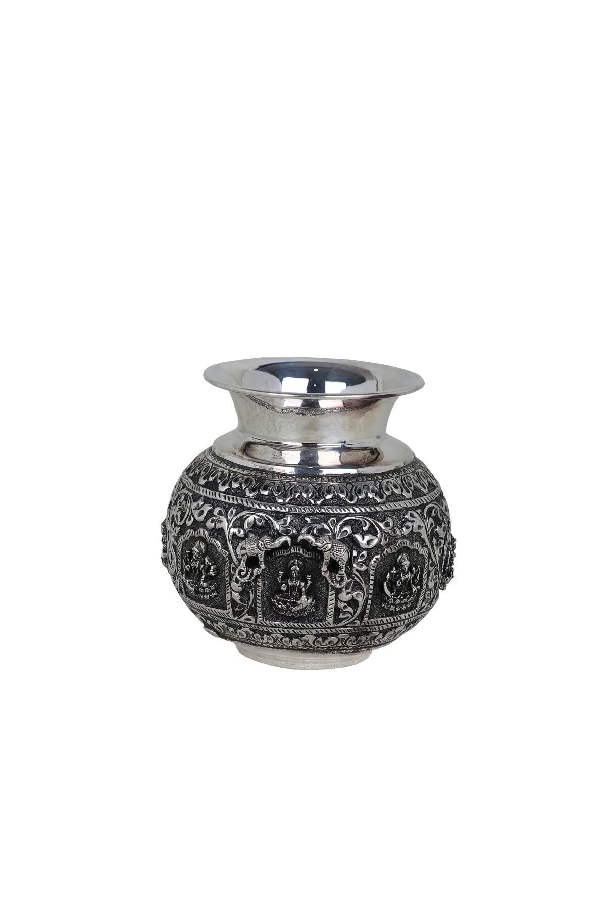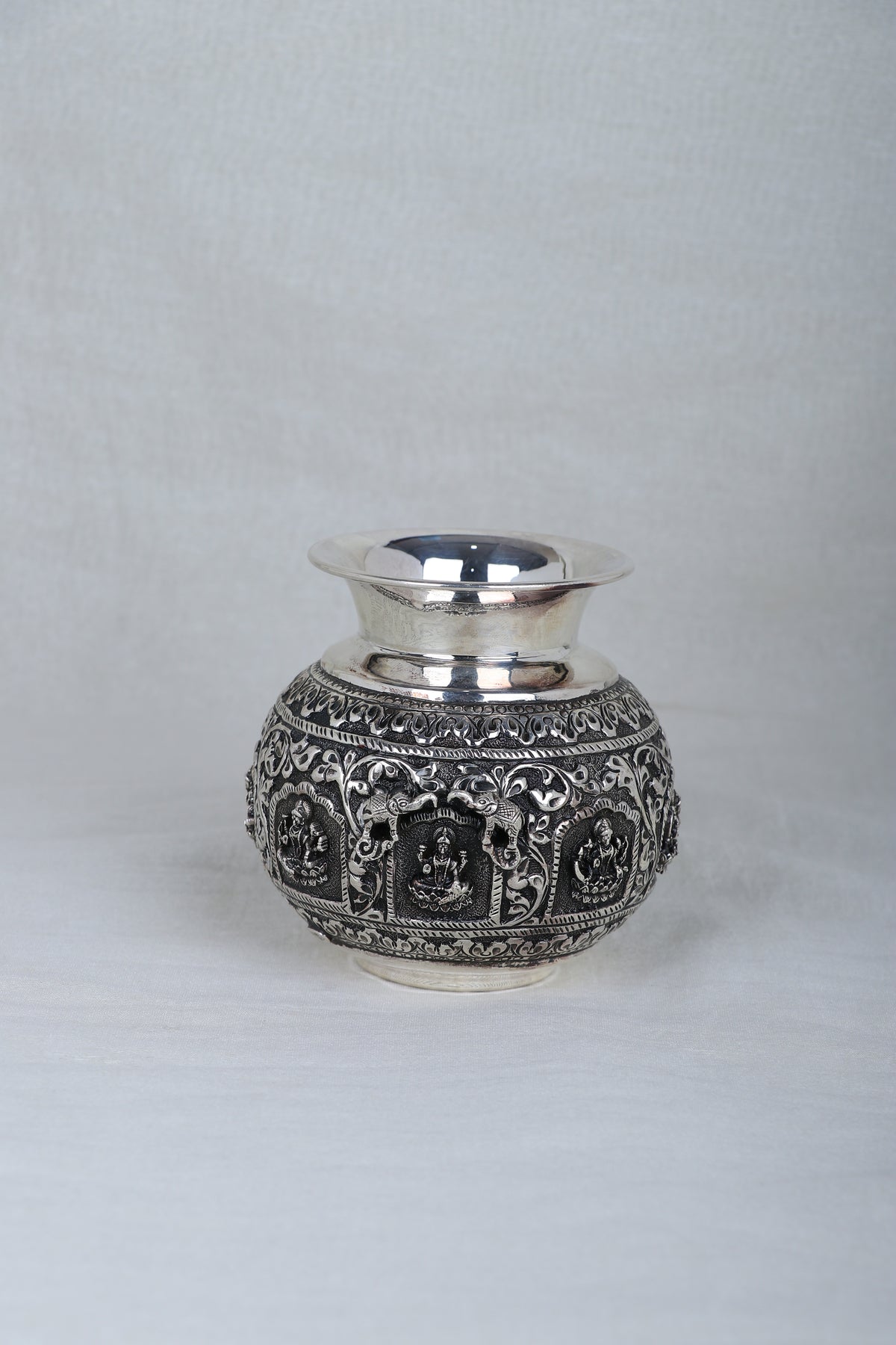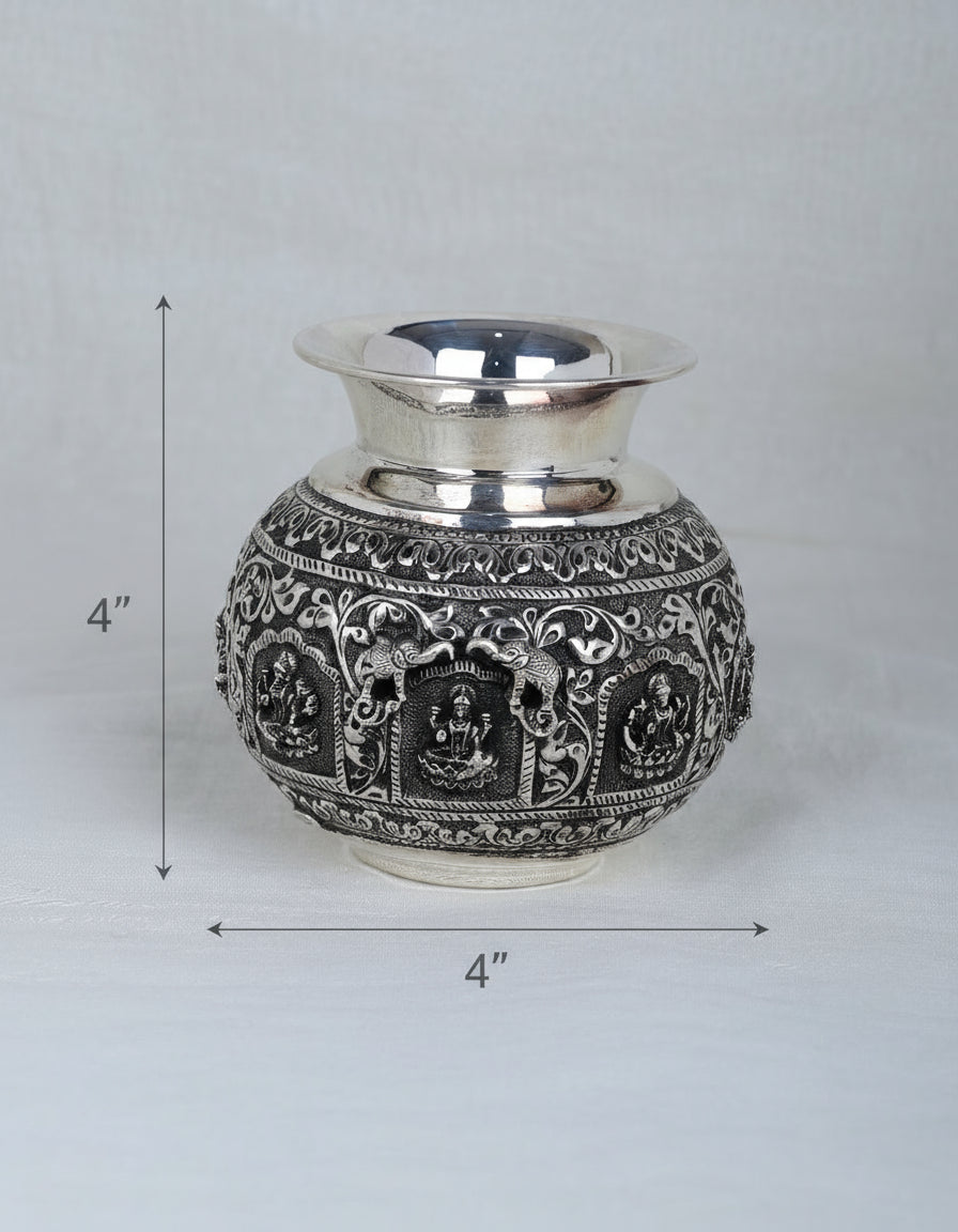 Type: Antique Silver Temple Kalash/Lota, Goddess-Elephant Motif